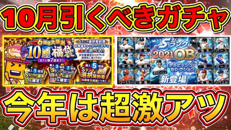 【プロスピA】10月に引くべきオススメガチャ!今年の10月は例年以上に豪華確定?!アニバが11月に登場することで神ガチャが10月に集結?!【プロ野球スピリッツA】【選択契約書7周年福袋・OBダルセレ】
